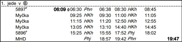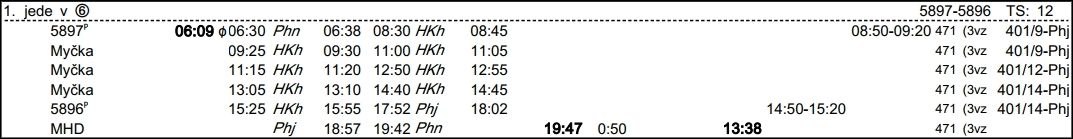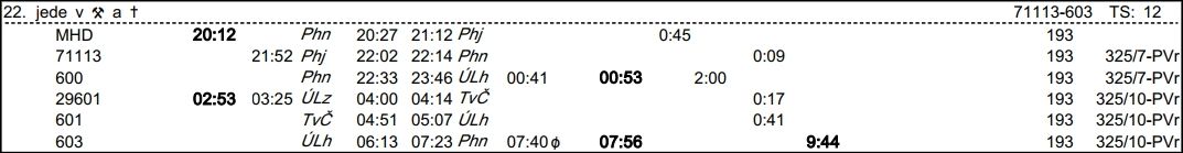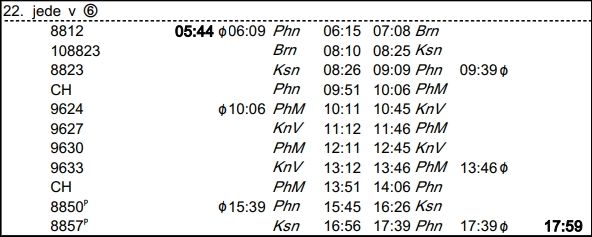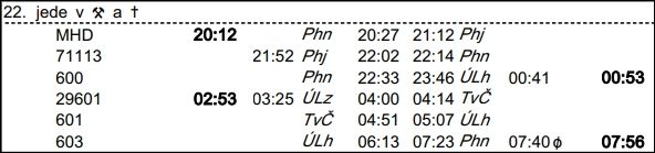 ❯ 600 přechází druhý den na 618, odjezd 6:48.