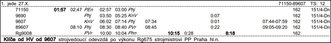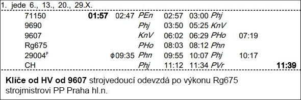 ❯ Klíče od 9607 lze po domluvě s kolegou nechat v místnosti pro přerušení v Holešovicích, jinak patří ke strojmistrům Phn (vstup z ul. Růžová).