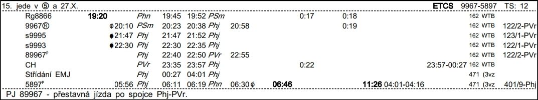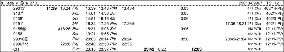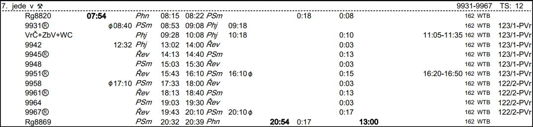 ❯ Po příjezdu 9967 posun dle výpravčího, odjezd (obvykle zajedeš do 512–518).