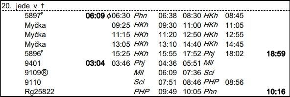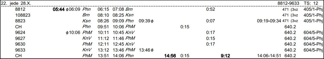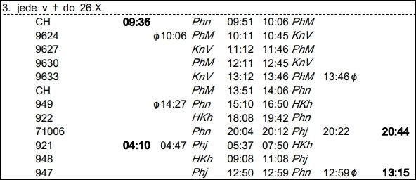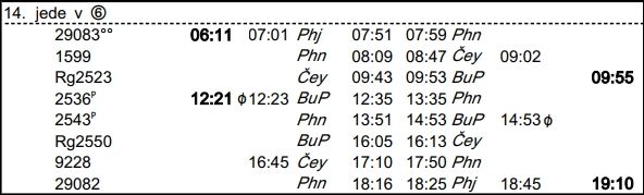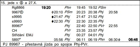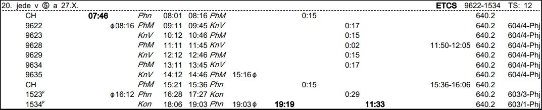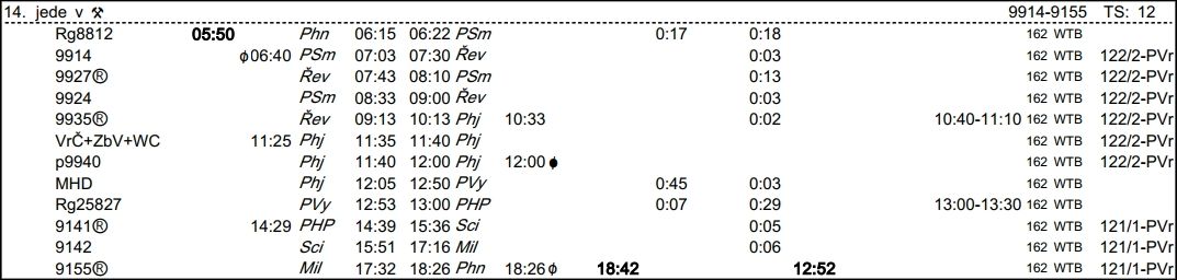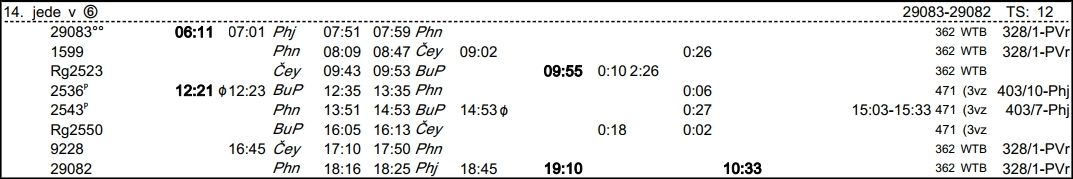 ❯ 109633 předáváš na 109636 (Kralupy), odjezd 14:16.