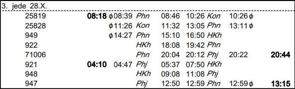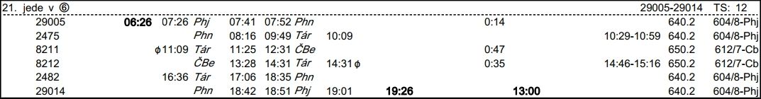 ❯ 600 přechází druhý den na 620, odjezd 4:40.
