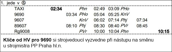 ❯ Klíče pro 9690 a od 9607 by měly být u strojmistrů Phn (vstup z ulice Růžová), nebo se domluv s kolegou, kde nechat klíče, třeba v místnosti pro přerušení v Holešovicích.