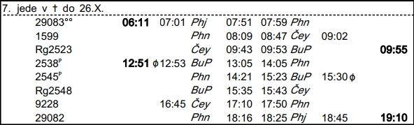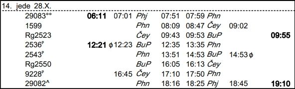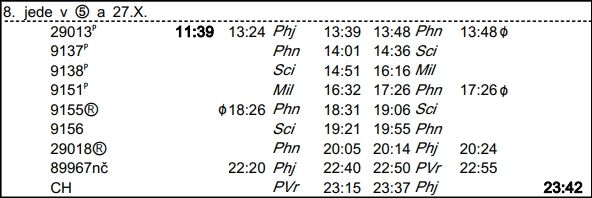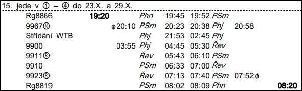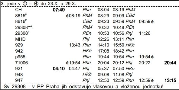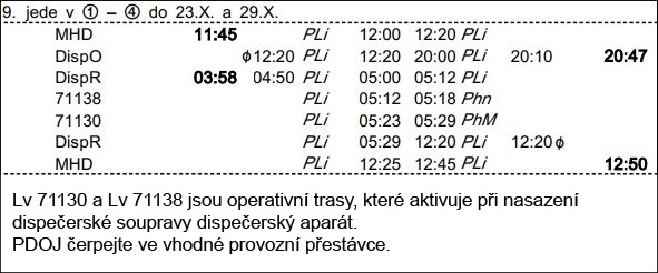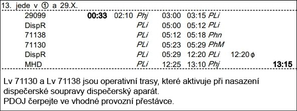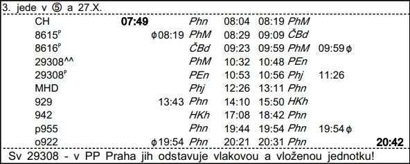 ❯ O nasazení soupravy na 29099 se vždy informuj u vozového strojmistra (602 316 049), může být nasazena do jiného oběhu.