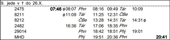 ❯ 9622 bereš přední ej od 6907, příjezd 8:16.