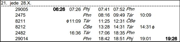❯ 1534 předáváš na 1535, odjezd 19:28.