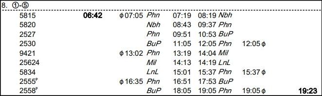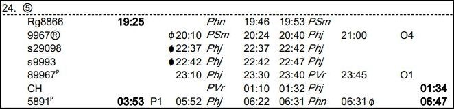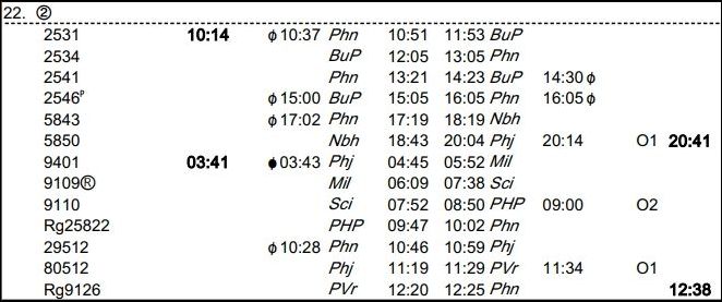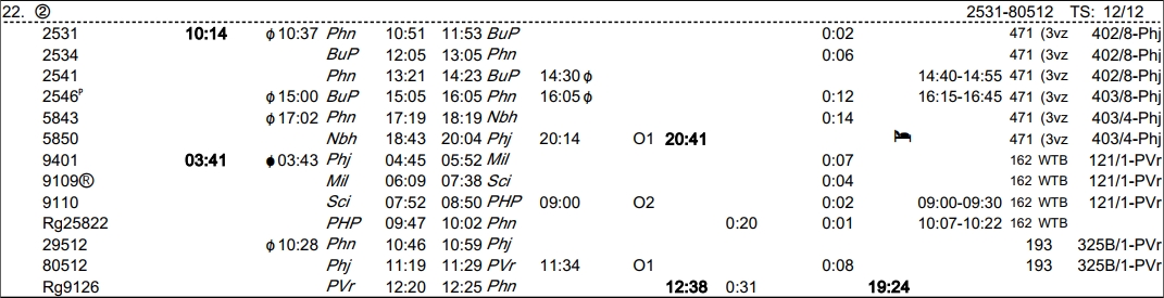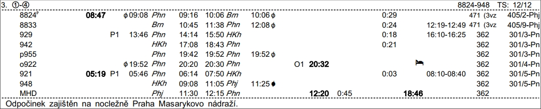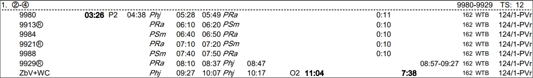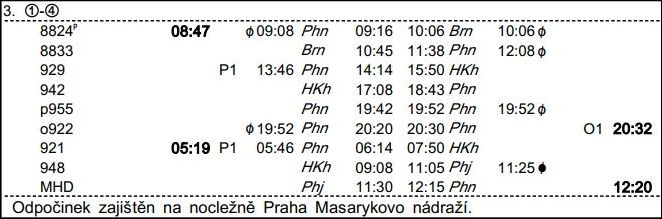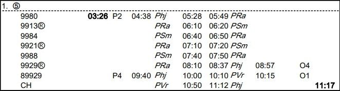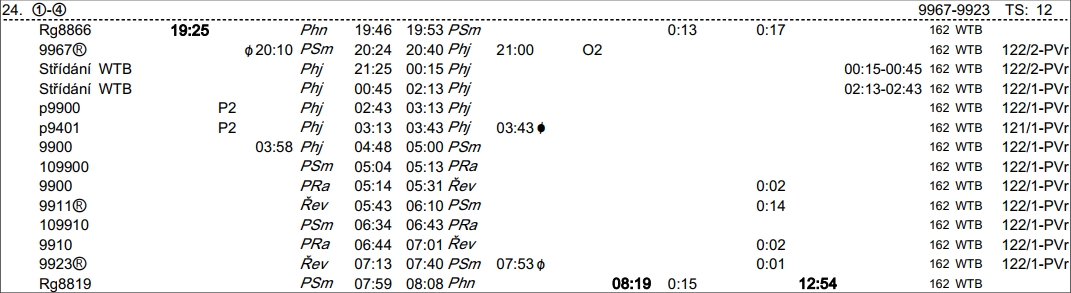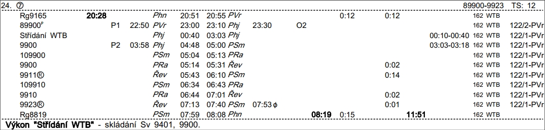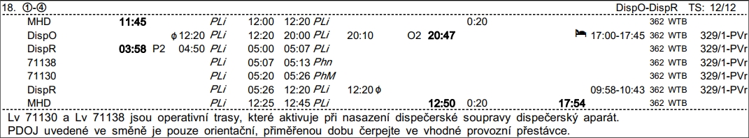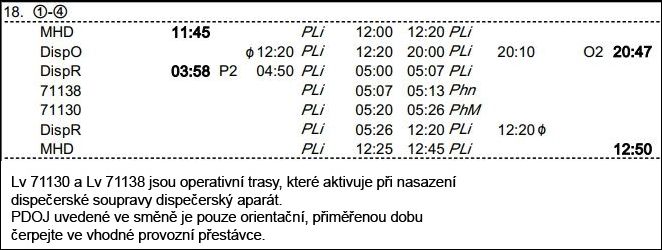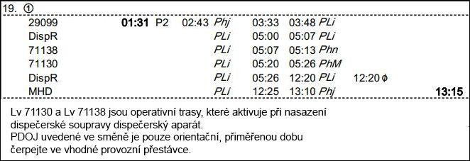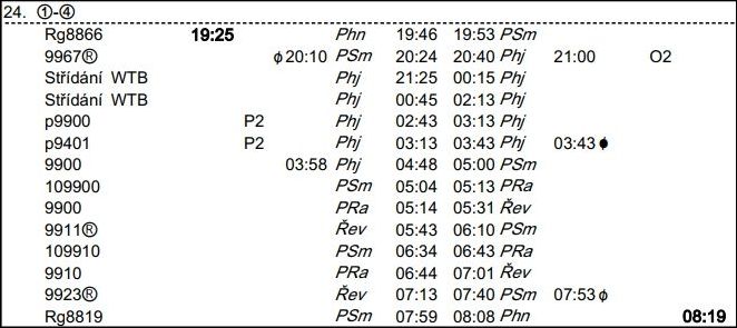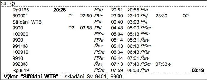 ❯ 9992 odjezd 4:32 - soupravu vyvézt na čas osy do koleje „A“, kde proběhne střídání (osa) se strojvedoucím DC. Pokud se strojvedoucí v čase osy nedostaví, soupravu vyvézt k výpravčímu.