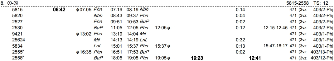 ❯ 1534 předáváš na 1535, odjezd 19:27.