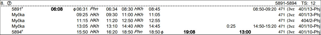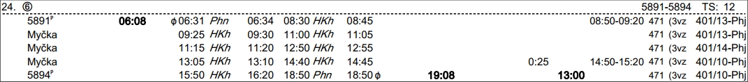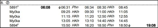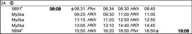 ❯ 5891 přijede z Jihu v 6:31, přiveze 111/24 PÁ.