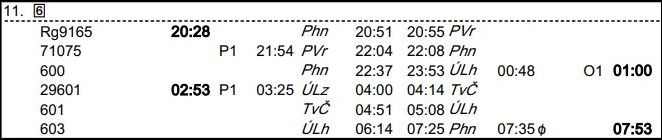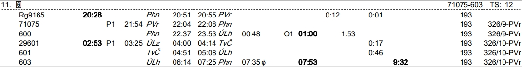 ❯ Po příjezdu 601 do ÚLh najede na konec soupravy jiné HV a souprava jede směr Praha. Čekáš na příjezd 603, zapřáhneš a jedeš do Prahy.