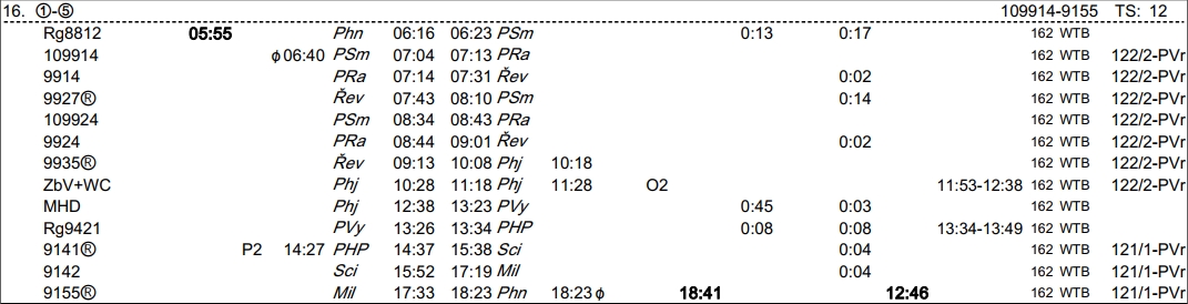 ❯ 9951 předáváš na 9954, odjezd 16:34.