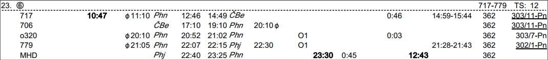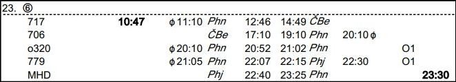❯ 717 bereš od 724 (Budějovice), příjezd 11:10.