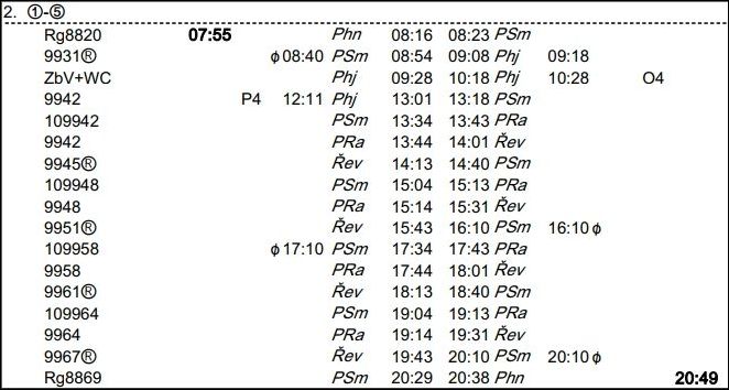 ❯ O nasazení soupravy na 29099 se vždy informuj u vozového strojmistra (602 316 049), může být nasazena do jiného oběhu.