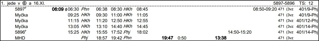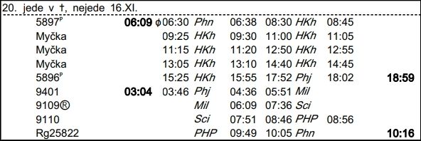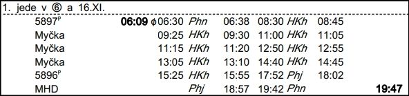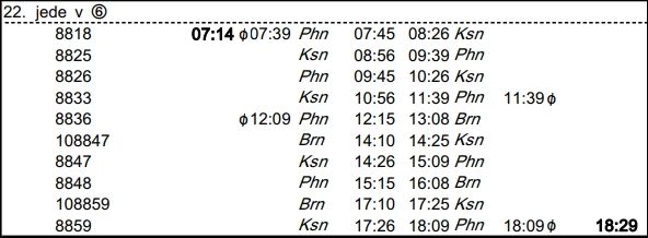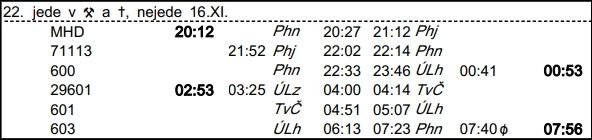 ❯ 600 přechází druhý den na 618, odjezd 6:48.