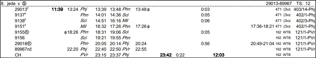 ❯ S vlakovou od 8616 zajedeme na Hrabovku kde již bude čekat 3x 471, spojíš a budeš dělat 4. v pořadí v 29308.