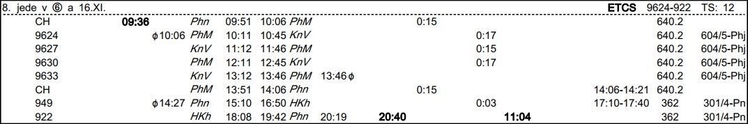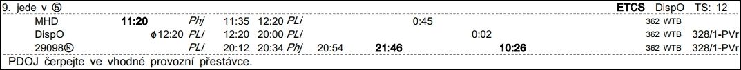 ❯ Po příjezdu 8616 na PhM rozpojíš a postrk 8616 předáváš na 9325, odjezd 10:11.