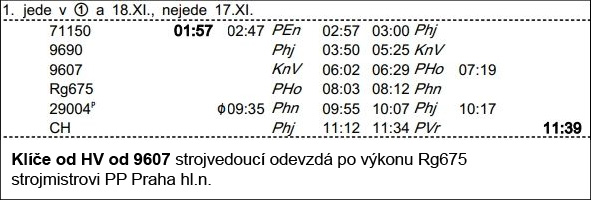❯ Klíče od 9607 lze po domluvě s kolegou nechat v místnosti pro přerušení v Holešovicích, jinak patří ke strojmistrům Phn (vstup z ul. Růžová).