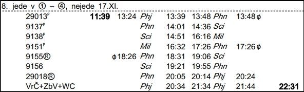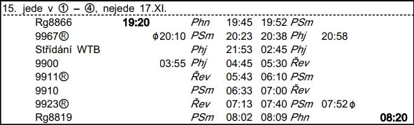 ❯ O nasazení soupravy na 29099 se vždy informuj u vozového strojmistra (602 316 049), může být nasazena do jiného oběhu.
